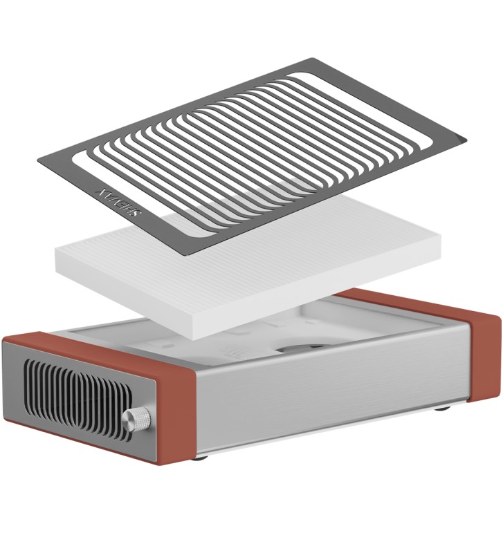 Ο απορροφητήρας Style Pro διαθέτει μοναδικό, μοντέρνο και πολύχρωμο σχεδιασμό, διατίθεται σε διάφορες αποχρώσεις και ενσωματώνεται όμορφα στον πάγκο μανικιούρ σας. Δεν απαιτεί ενσωμάτωση, γεγονός που τον καθιστά πρακτικό χωρίς εγκατάσταση. Με συμπαγές μέγεθος, είναι ιδανικός για επίσκεψη κατ’ οίκον και με χαμηλό ύψος που ταιριάζει απόλυτα με τα handrest χεριών της SheMax. Χάρη στο χαμηλό επίπεδο θορύβου σε σχέση με ανταγωνιστικά μοντέλα, λειτουργεί σχεδόν αθόρυβα χωρίς να ενοχλεί τους πελάτες σας.